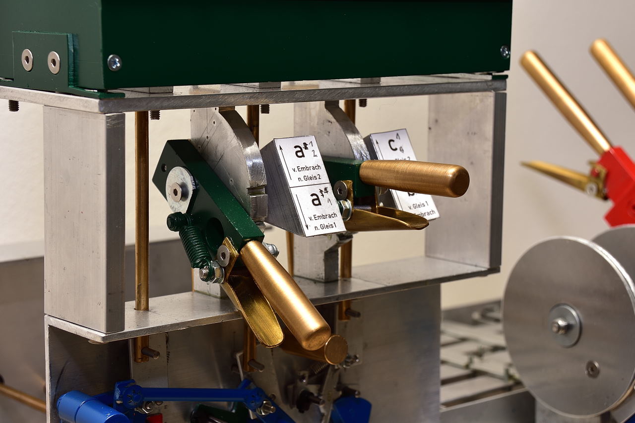 Die Fahrstraßenhebel dienen zum Einstellen einer Fahrstraße. Pro Hebel können zwei Fahrstraßen eingestellt werden, indem der Hebel nach oben oder unten bewegt wird. Diese beiden Fahrstraßen schließen sich logisch aus - sie können einfach nicht gleichzeitig eingelegt werden. Jeder Hebel ist mit einer Fahrstraßenschubstange verbunden, die im Verschlusskasten von der Mittelstellung (keine Fahrstraße eingelegt) nach links oder rechts geschoben werden.